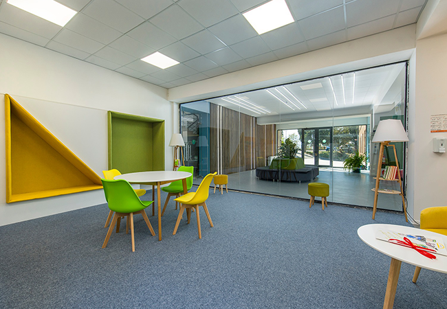 ვინილითა და რბილი ხალიჩებით მოვაწვეთ მწვანე სკოლის ტყის კამპუსის იატაკი
